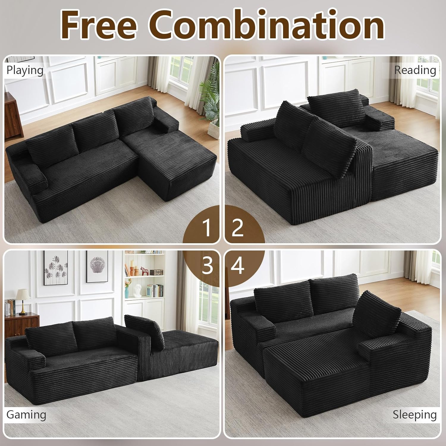 No Assembly – Ready Fast: Skip the setup hassle! Unbox the modular pieces, lightly tap each segment to fluff, and your couch is instantly usable. It’ll reach full, plump luxury (and photogenic shape) within 72 hours—no tools, no instructions, just quick access to lounging.