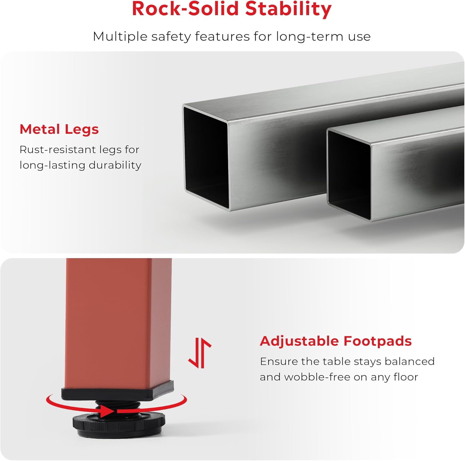 Robust and Thick Iron Metal Table Legs Offer Increased Stability and Adjustable Leveling Feet Enhance Stability On Uneven Surfaces, Eliminating Wobble