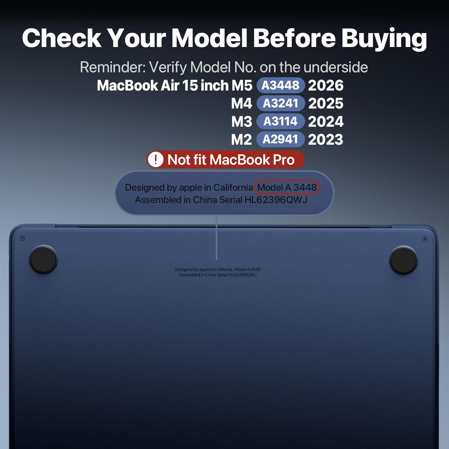 【Precise Fit, Seamless Closure】Patented micro-clips lock securely for a flawless, device-safe fit—no gaps, edge-lifting, or screen interference. Vital for your device’s lifespan. Compatible for MacBook Air 15 inch Case 2026-2023 Release M5 M4 M3 M2 Chip (Model A3448/ A3241/ A3114 /A2941). Pls verify Model No. the underside of MacBook before buying