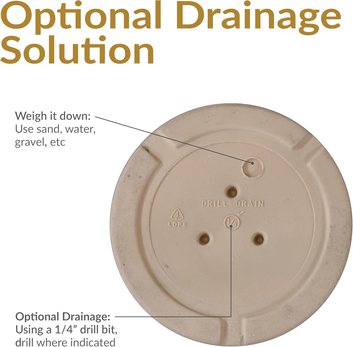 EQUIPPED FOR DRAINAGE: The simple design of this large outdoor planter complements many different styles of decor. It’s great for growing houseplants or bringing outdoor plants indoors for the winter. A drainage hole can be added to the area indicated on the bottom of the planter using a 1/4″ drill bit. The planter is double-walled and must be drilled to penetrate both walls for proper drainage.