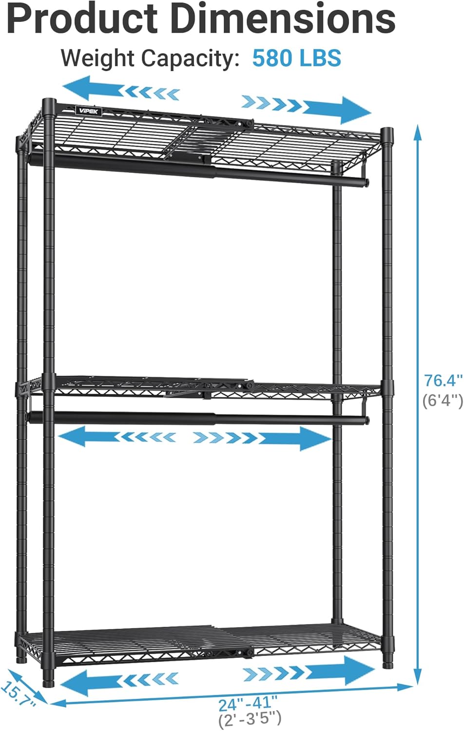 VIPEK X1 Expandable Clothes Rack Heavy Duty Adjustable from 2′ to 3’5″ with Adjustable Shelves and Hanger Rods, Reach-in & Walk-in Closets Metal Garment Racks Portable Closet, Black